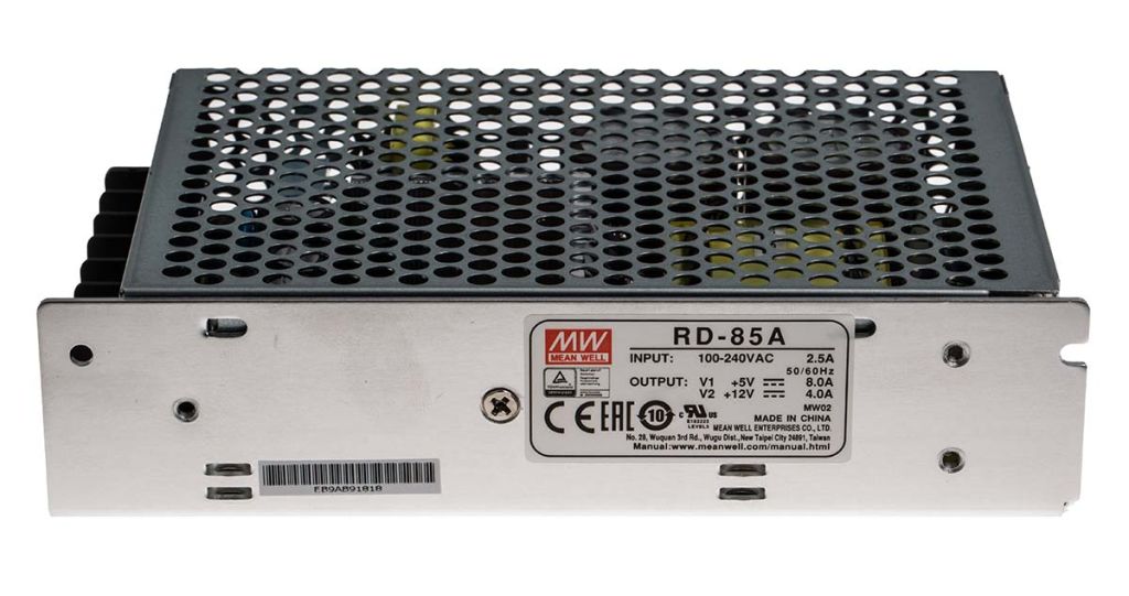 | Product description | Mean Well Embedded Switch Mode Power Supply SMPS, 5 V dc, 12 V dc, 4 A, 8 A, 88W Enclosed |