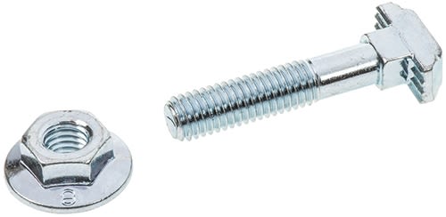 T-bolts install anywhere along the profile T-slot, rotating and locking into position.
