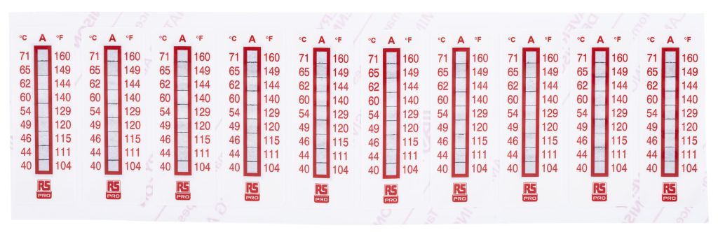 From RS PRO, comes a range of non-reversible temperature test strips. This range of easy to read temperature labels are designed to be self-adhesive and provide the current temperature with an accuracy of +/- 1°C. These temperature test strips will permanently record the highest bracketed temperature reached by the label.
