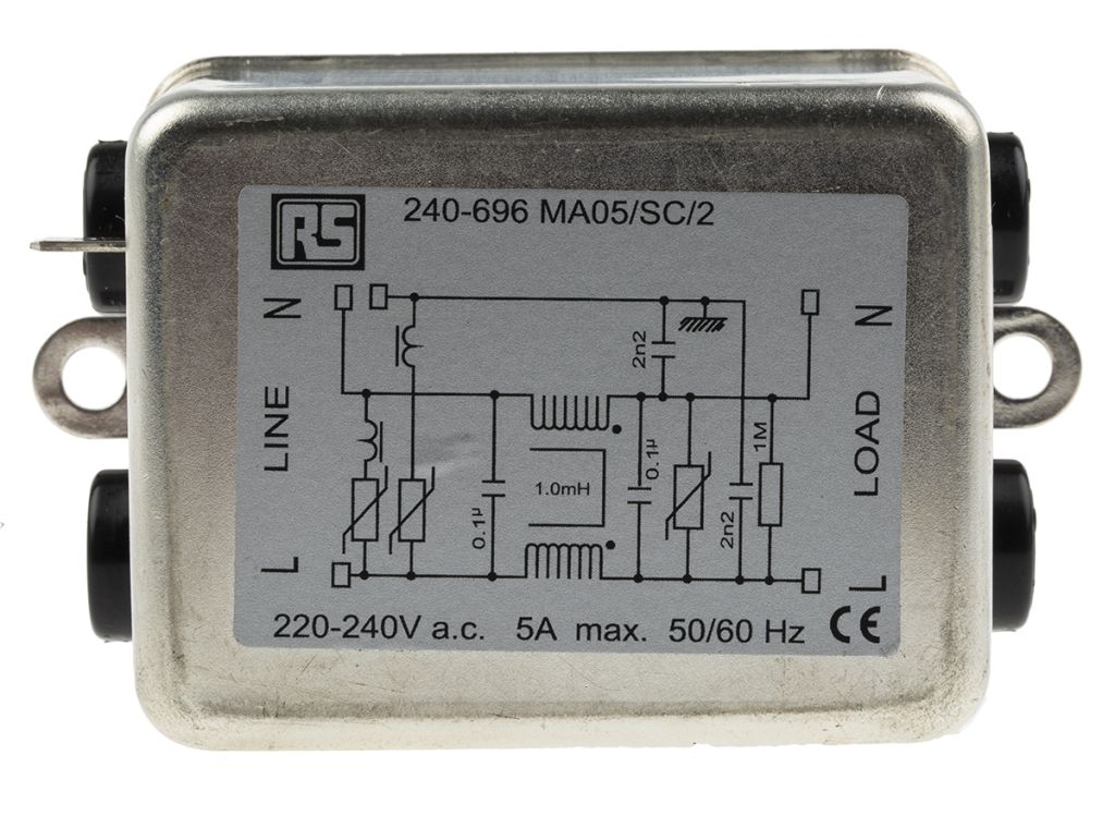 | Product description | RS PRO 5A 240 V ac 50/60Hz, Chassis Mount RFI Filter, Fast-On |