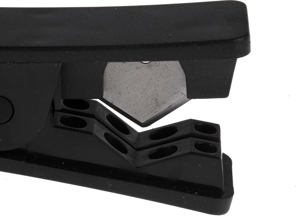 Cuts all resilient plastic tube (Nylon, Polyurethane, PTFE, Braided PVC, Soft rubber etc.) from 4 to 14mm diameter
