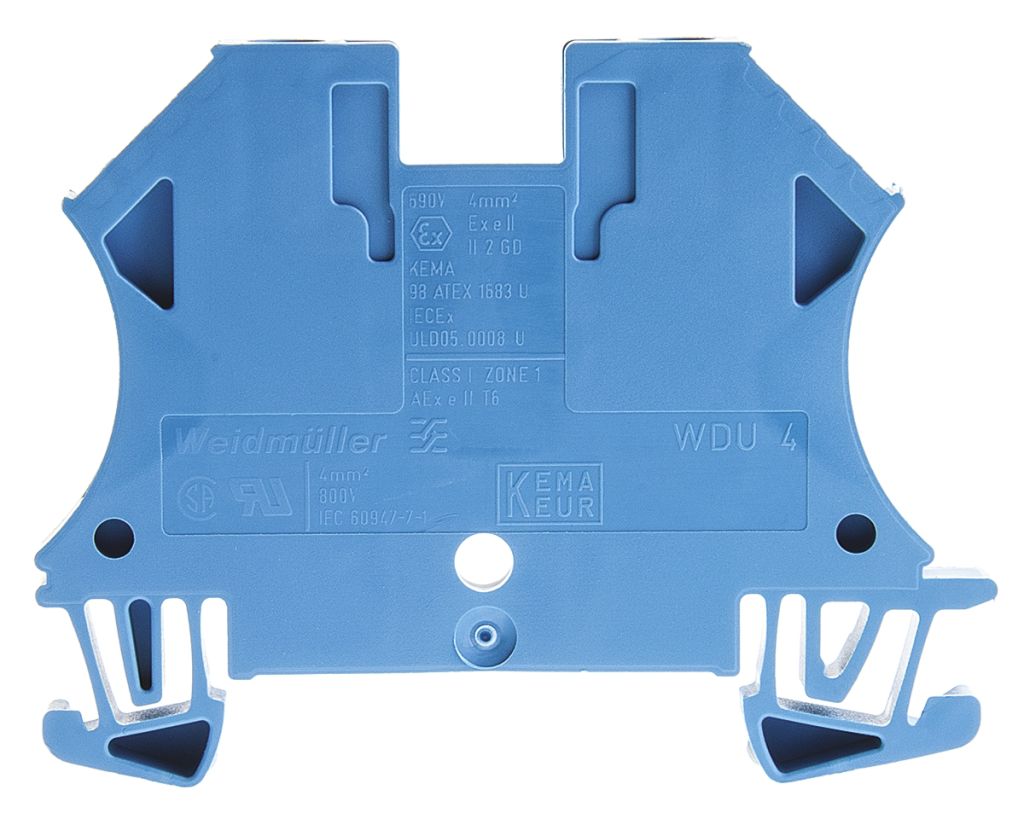 | Product description | Weidmuller Blue WDU Feed Through Terminal Block, 26 → 10 AWG, 4mm², ATEX, 800 V |