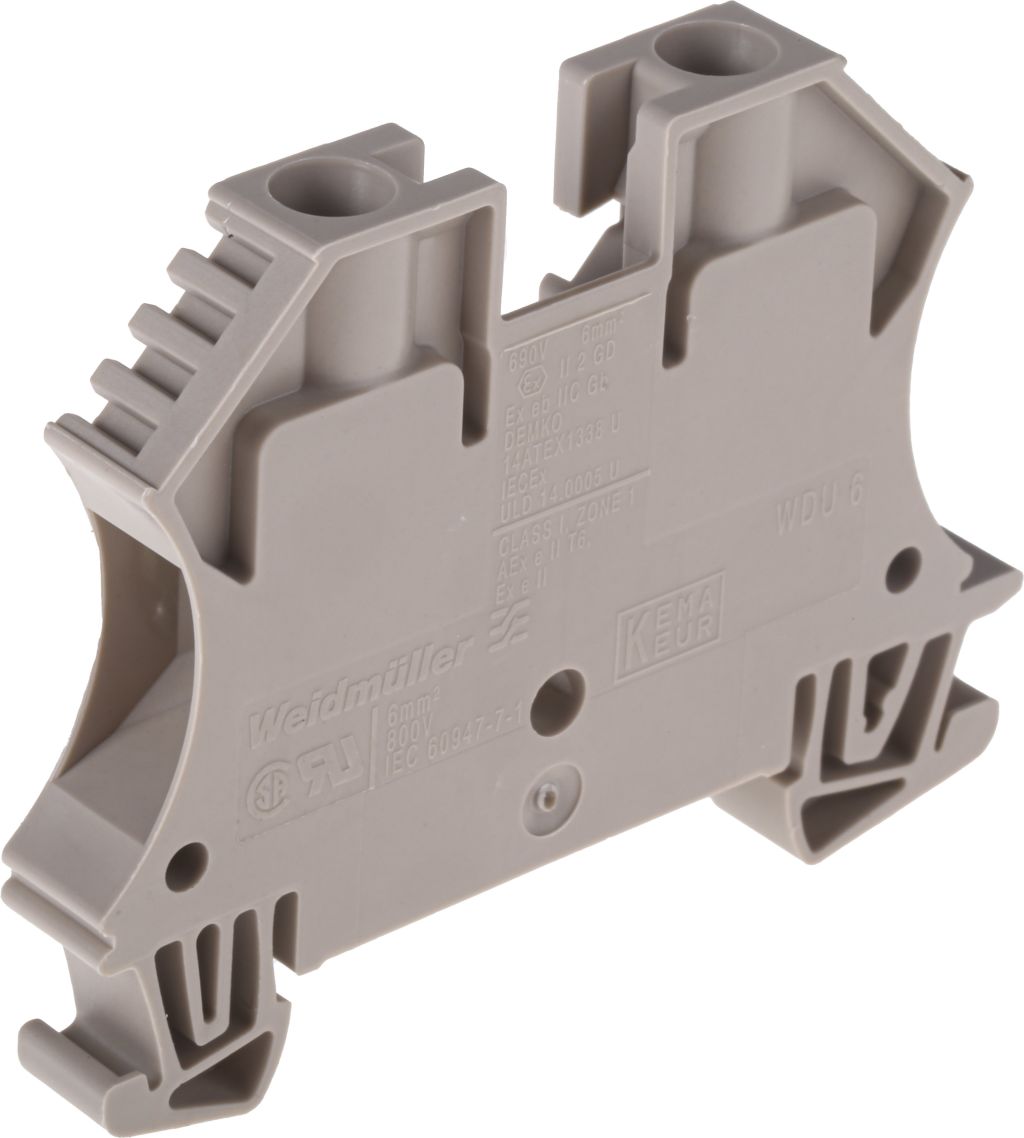 | Product description | Weidmuller Brown WDU Feed Through Terminal Block, 26 → 8 AWG, 6mm², ATEX, 800 V |