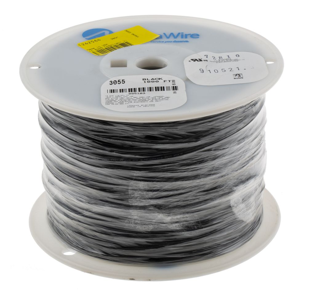 Product description Alpha Wire Black 0.81 mm² Hook Up Wire, Premium Series, 18 AWG, 16/0.25 mm, 305m
