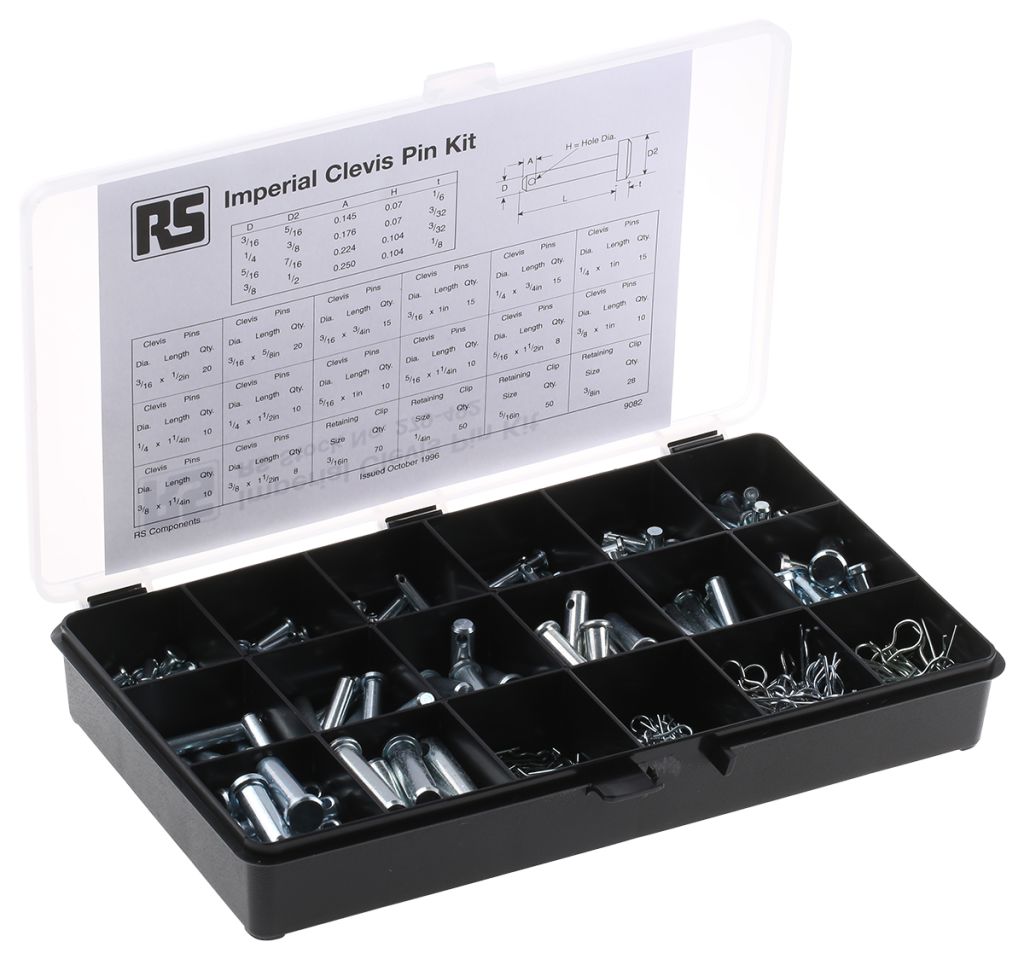 | Product description | 352 piece Bright Zinc Plated Steel Imperial Clevis Pin Kit |