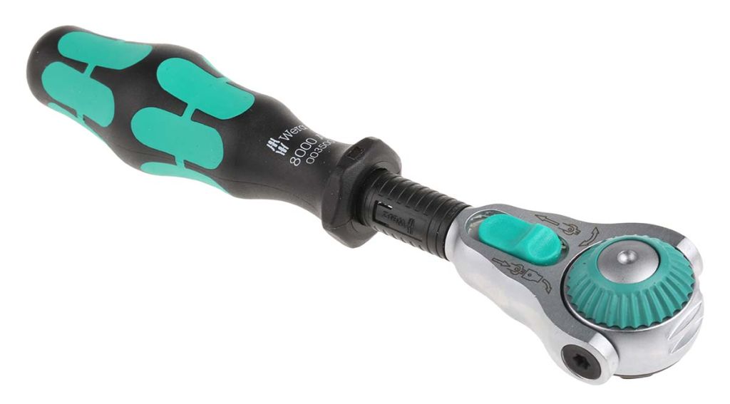 The Zyklop speed ratchet features a thumbwheel for clockwise and anticlockwise rotation and offers the equivalent of 5 different ratchets in one tool; fine-tooth, flex head, angle, nut fixing and power ratchets